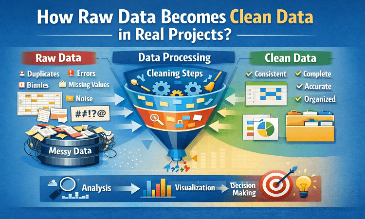 Raw data moves through systems every second. It flows from apps, devices, forms, and services into storage layers. This data is not ready to use. It carries gaps, wrong values, mixed formats, and broken links. Some records repeat. Some arrive late. Some arrive out of order. If this data is used as it is, reports break, models learn wrong patterns, and teams lose trust in numbers. Real projects treat data cleaning as a core system process, not a final step.